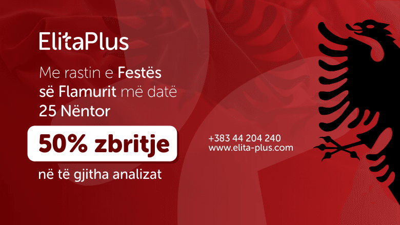 Qendra Diagnostike Endokrinologjike ElitaPlus për hir të festës së Flamurit, me 25 nëntor ofron mundësi të analizave për gjëndrën tiroide me 50% zbritje, të cilat mund t’ju ndihmojnë të zbuloni mungesën ose tepricën e hormoneve të Tiroidesë. Zbritja gjithashtu vlen edhe për të gjitha analizat tjera!