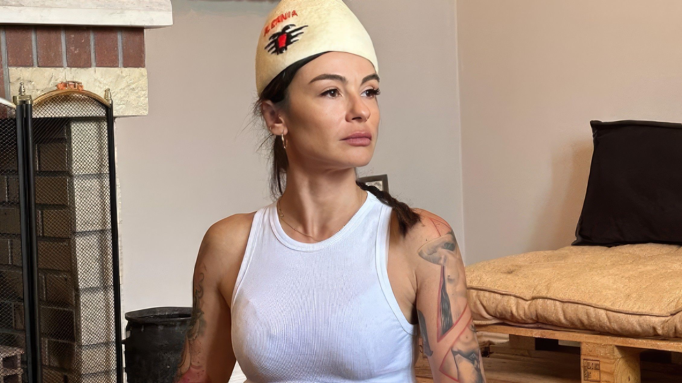 Zhaklin Lekatari merr vëmendje në fotografitë me plis në kokë