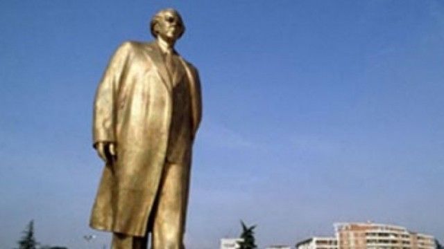 Busti i Enver Hoxhës është punuar nga skulptori, Odise Paskali dhe gjendej deri në vitin 1981 në Fondin e Galerisë Kombëtare të Arteve. Fondi i Galerisë së Arteve ka ndërmarrë një aksion për kthimin në fondin e saj të veprave, që ndër vite janë marrë nga institucionet shtetërore për të mos u kthyer më.
