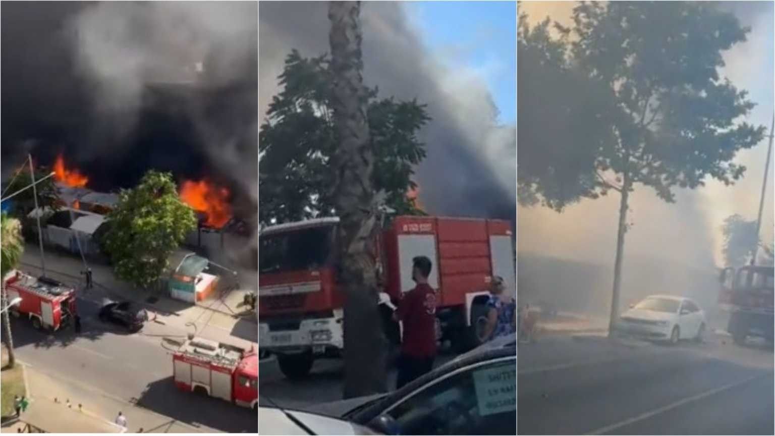 Një zjarr i përmasave të mëdha ka shpërthyer pasditen e sotme në zonën e Plazhit në Durrës, pranë tregut lokal, duke shkaktuar panik te banorët dhe dëme të konsiderueshme materiale.