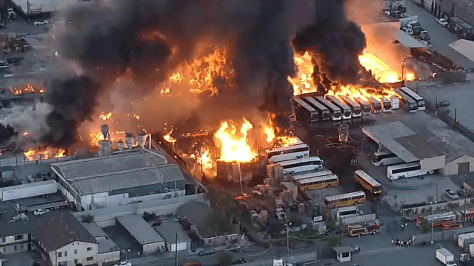 Zjarr masiv në një kompleks industrial në Los Angeles, flakët përfshijnë edhe një numër autobusësh