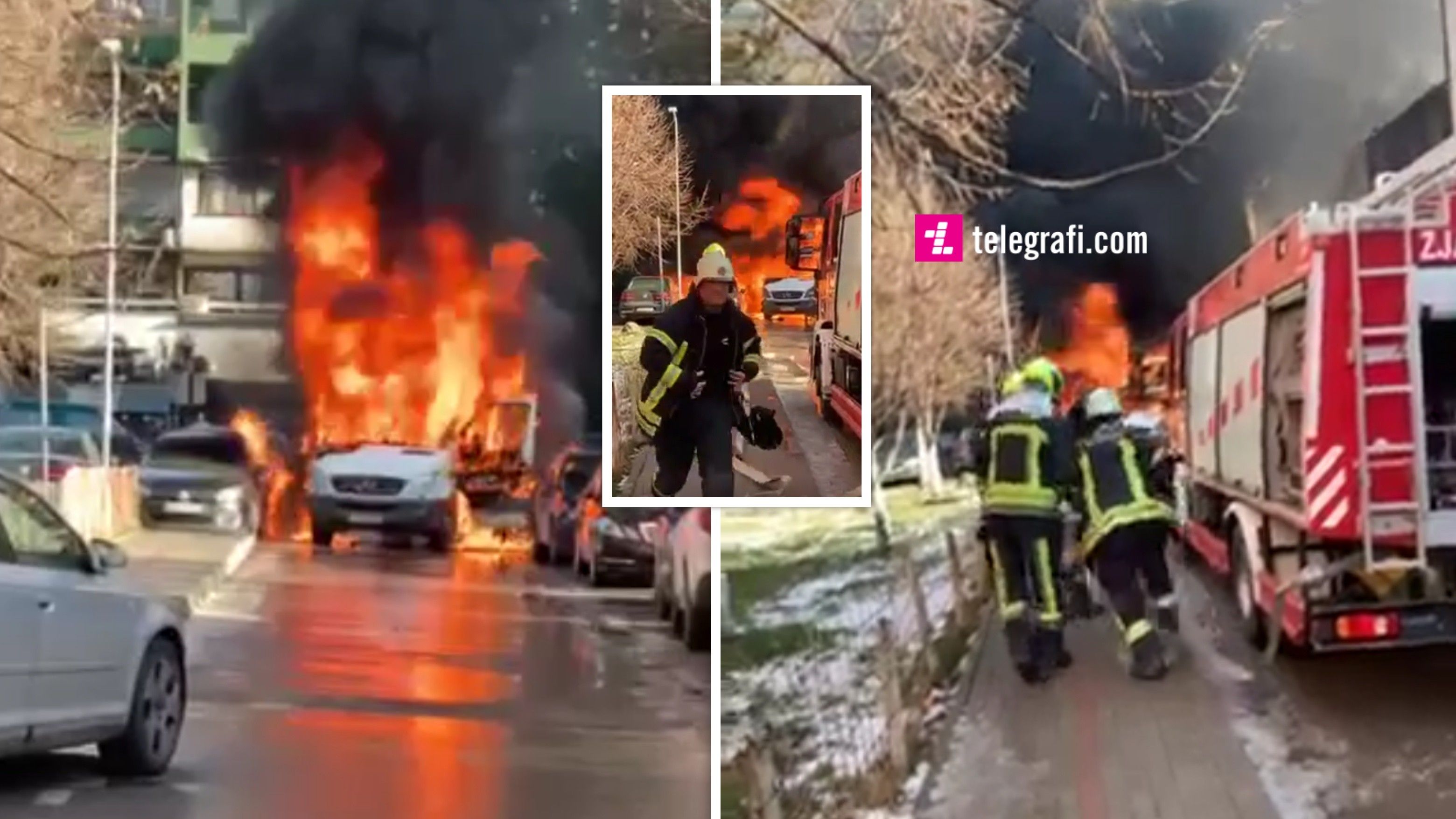 Zjarr në lagjen Dardani, lëndohet një person dhe përfshihen nga flakët një kamion dhe tri vetura