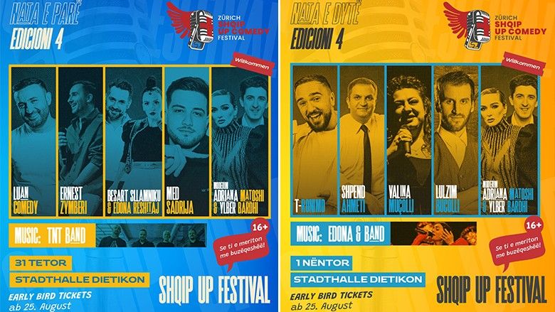Me një kombinim të humorit, muzikës dhe energjisë pozitive, ‘Zurich Shqip Up Comedy Festival’ pritet të mbledhë edhe këtë vit diasporën shqiptare dhe adhuruesit e komedisë në një atmosferë të paharrueshme në zemër të Zvicrës. /Telegrafi/