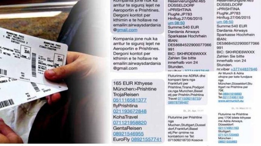 Por, çuditërisht Aeroporti Ndërkombëtar i Prishtinës “Adem Jashari”, ende vazhdon të rezervojë orare për këto agjenci, të cilat vetëm se janë bërë të ditura se po mashtrojnë bashkatdhetarët tanë përmes këtyre ofertave mashtruese me anë të mesazheve telefonike. Vetëm sivjet dyshohet se grupi në fjalë ka shitur më shumë se 5 mijë aviobileta kthyese nga Zvicra dhe Gjermania të cilat për destinacion kanë Kosovën.