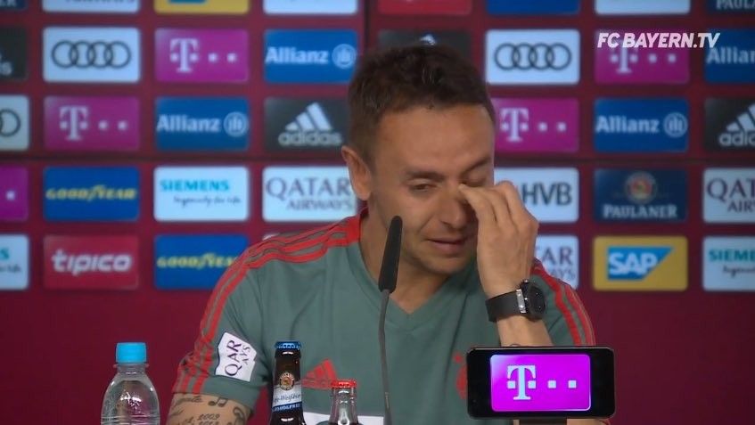 Mesfushori ka falënderuar klubin dhe tifozët për tetë vitet e kaluar në ‘Allianz Arena’, gjersa lotët e tradhtuan në fjalimin lamtumirës para mediave.