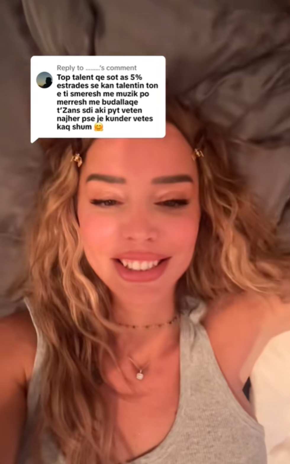 Komenti në fjalë thoshte: “Top talent që sot as 5 për qind e estradës se kanë talentin tënd, e ti nuk merresh me muzikë. A e ke pyetur veten ndonjëherë pse je kundër vetes kaq shumë?”.