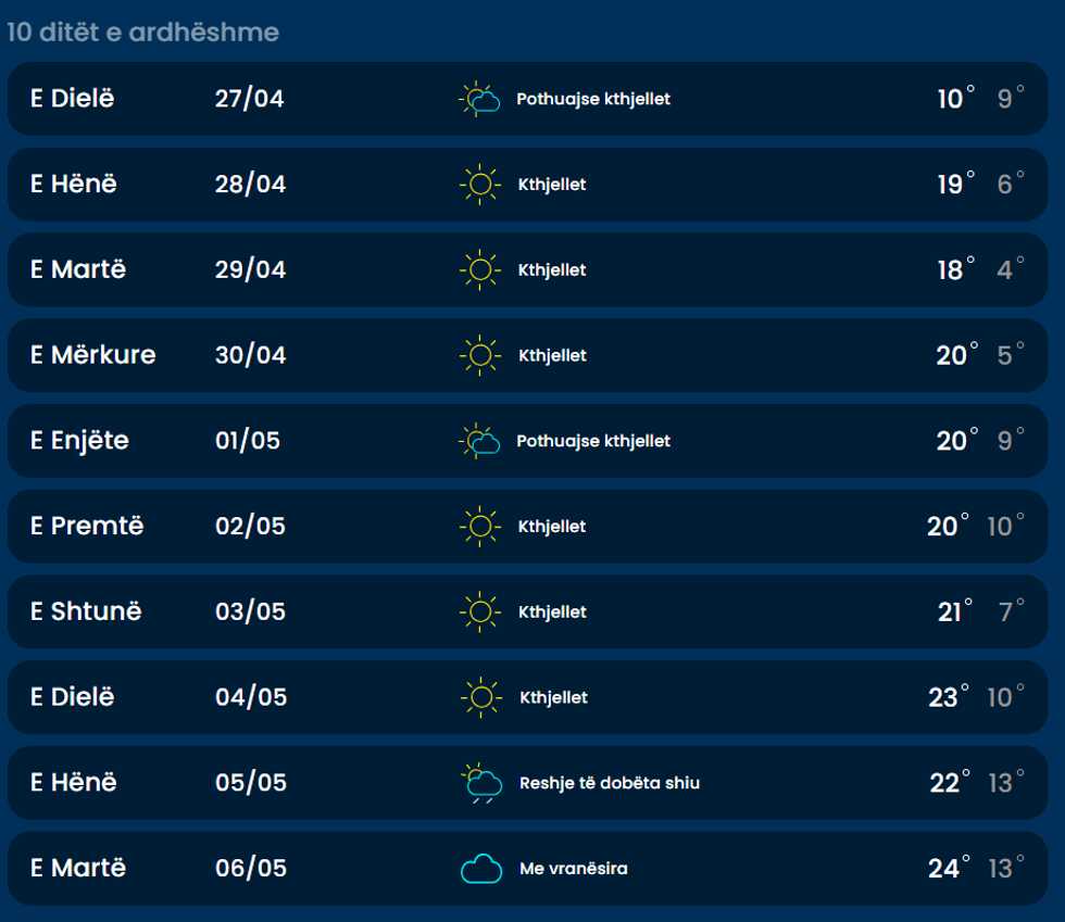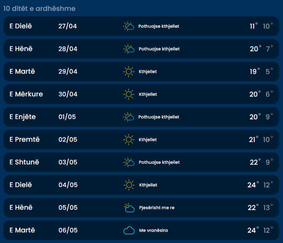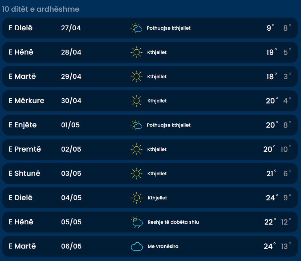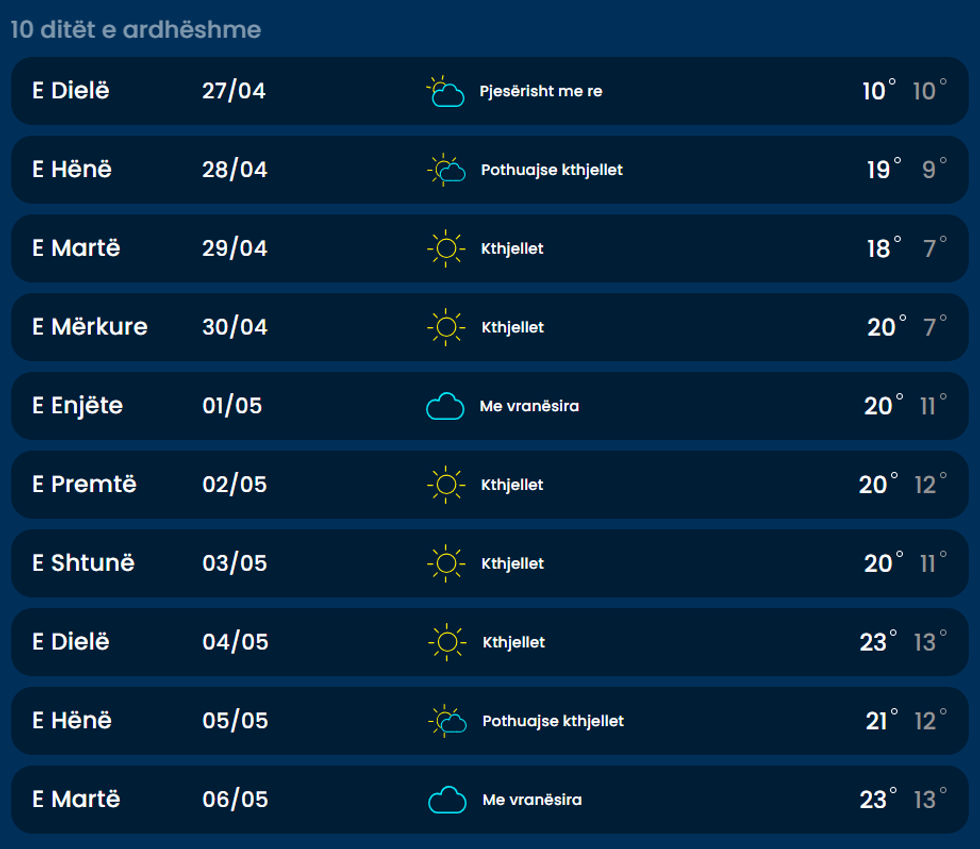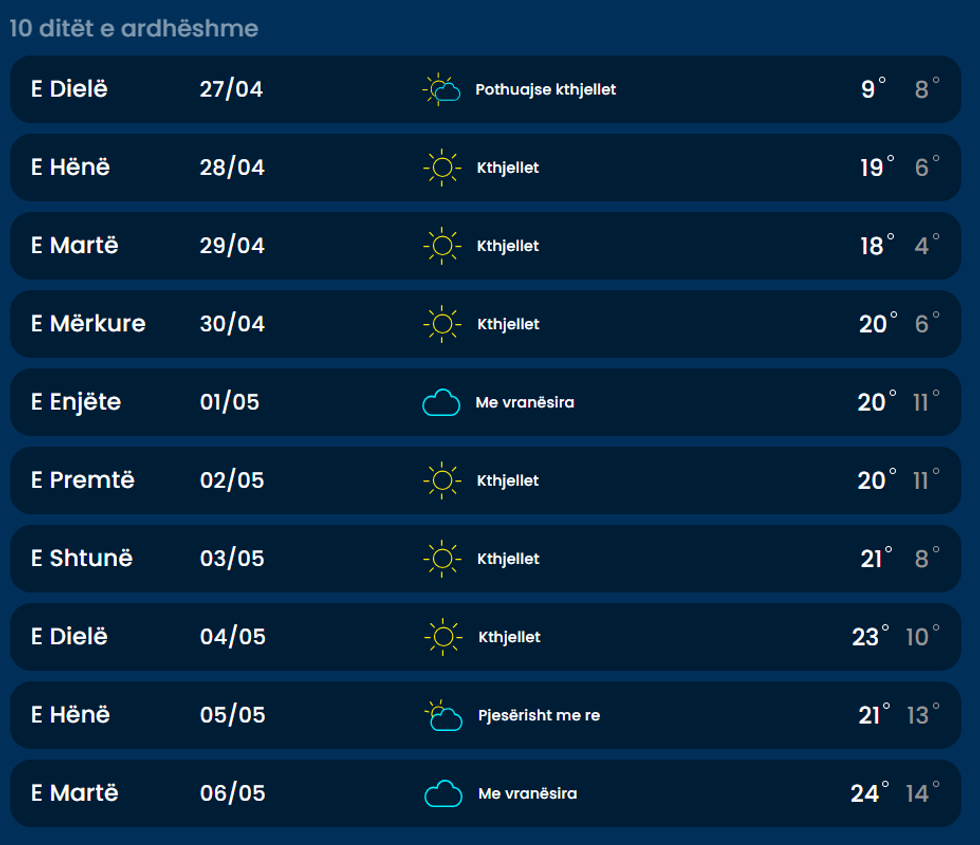 Më poshtë paraqitet parashikimi për secilin qytet.