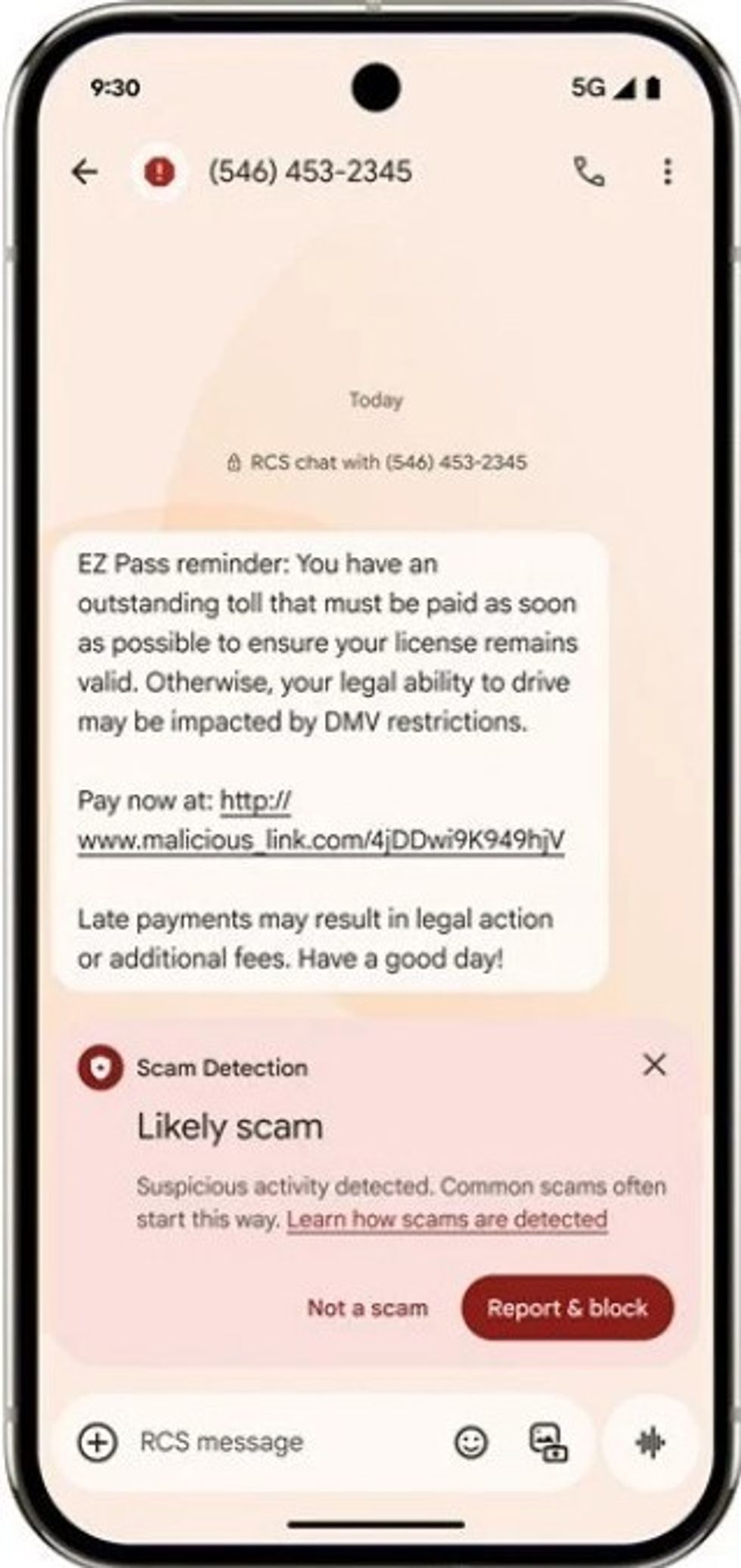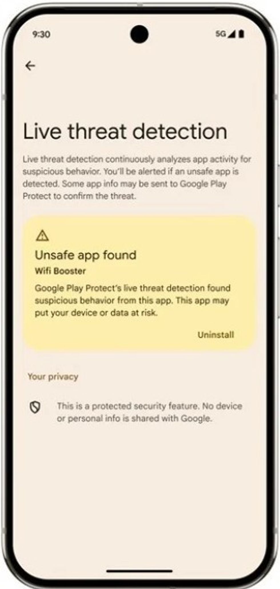 Google përdor gjithashtu inteligjencën artificiale për të filtruar mesazhet e rreme dhe të padëshiruara kur përdoret aplikacioni i parazgjedhur i Google për mesazhe. AI do të zbulojë aktivitetet e dëmshme të aplikacioneve në pajisje, pasi disa prej tyre përpiqen të fshihen ose të ndryshojnë ikonat. Algoritmi i mësimit të makinerisë skanon vazhdimisht tekstet ose modelet binare për të zbuluar mundësinë e softuerëve të dëmshëm.