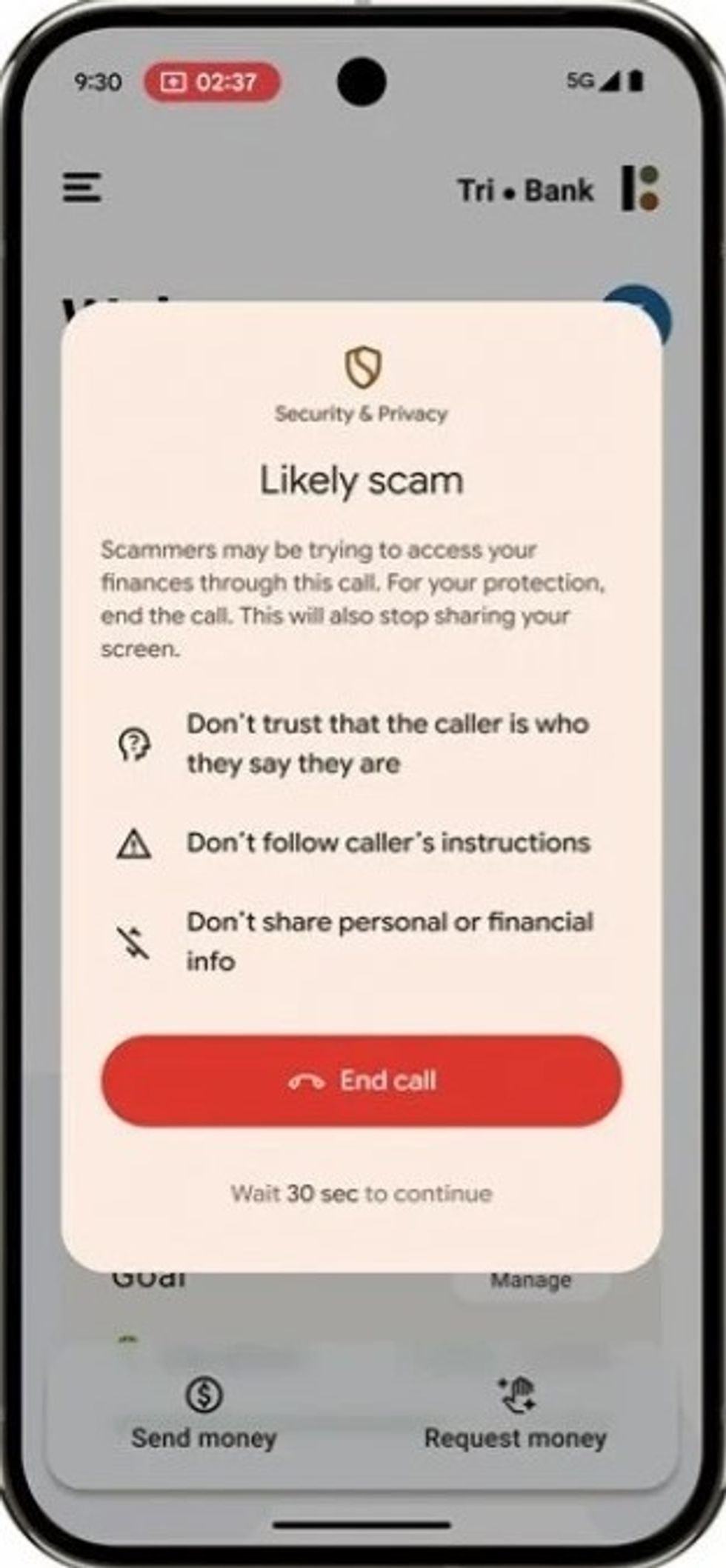 Android 16 do të përmirësojë gjithashtu sigurinë për aplikacionet bankare. Google bashkëpunon ngushtë me bankat britanike si Monzo, NatWest dhe Revolut. Gjatë një sesioni të ndarjes së ekranit, sistemi do të kërkojë nga përdoruesi të ndërpresë thirrjen kur të përpiqet të hapë një aplikacion bankar, pasi kjo është një nga mënyrat më të shpeshta që mashtruesit i marrin të dhënat e ndjeshme të përdoruesve.