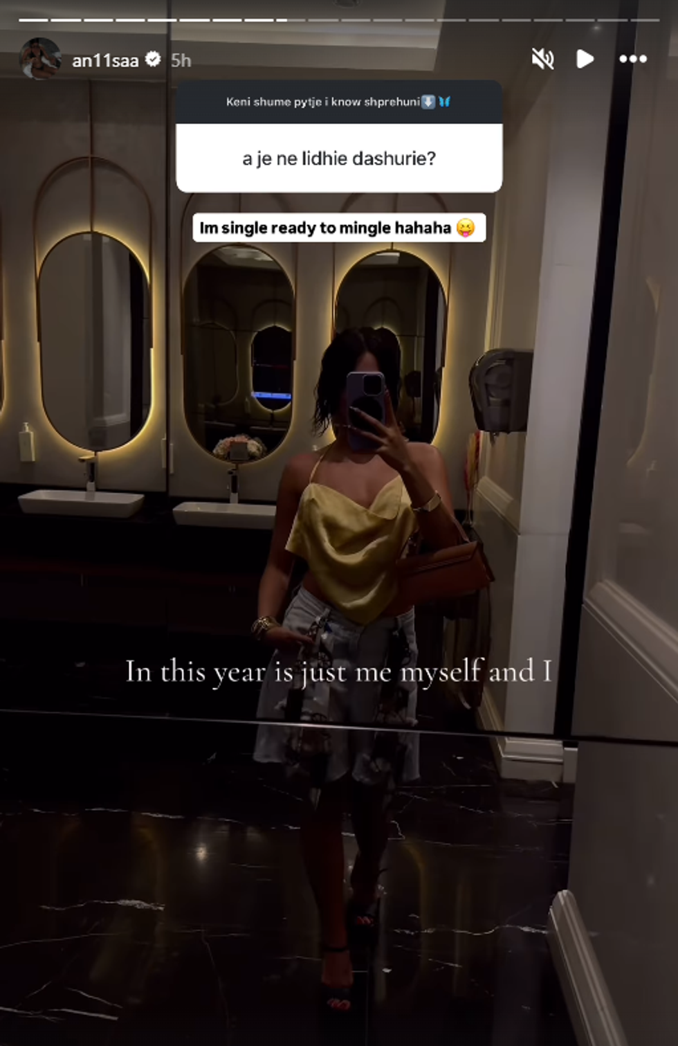 Në një postim të fundit në Instagram, ku iu përgjigj pyetjeve nga ndjekësit, Anisa u shpreh e drejtpërdrejtë për statusin e saj aktual në lidhje.