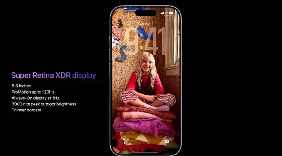 Tani ai mbështet ProMotion me një shpejtësi rifreskimi prej 120Hz, arrin një shkëlqim rekord prej 3,000 nitësh dhe është i veshur me një shtresë anti-reflektuese me 7 shtresa plus Ceramic Shield 2 për rezistencë 3-fish më të madhe ndaj gërvishtjeve. Apple thotë se gjithçka ka të bëjë me lexueshmërinë në çdo mjedis.
