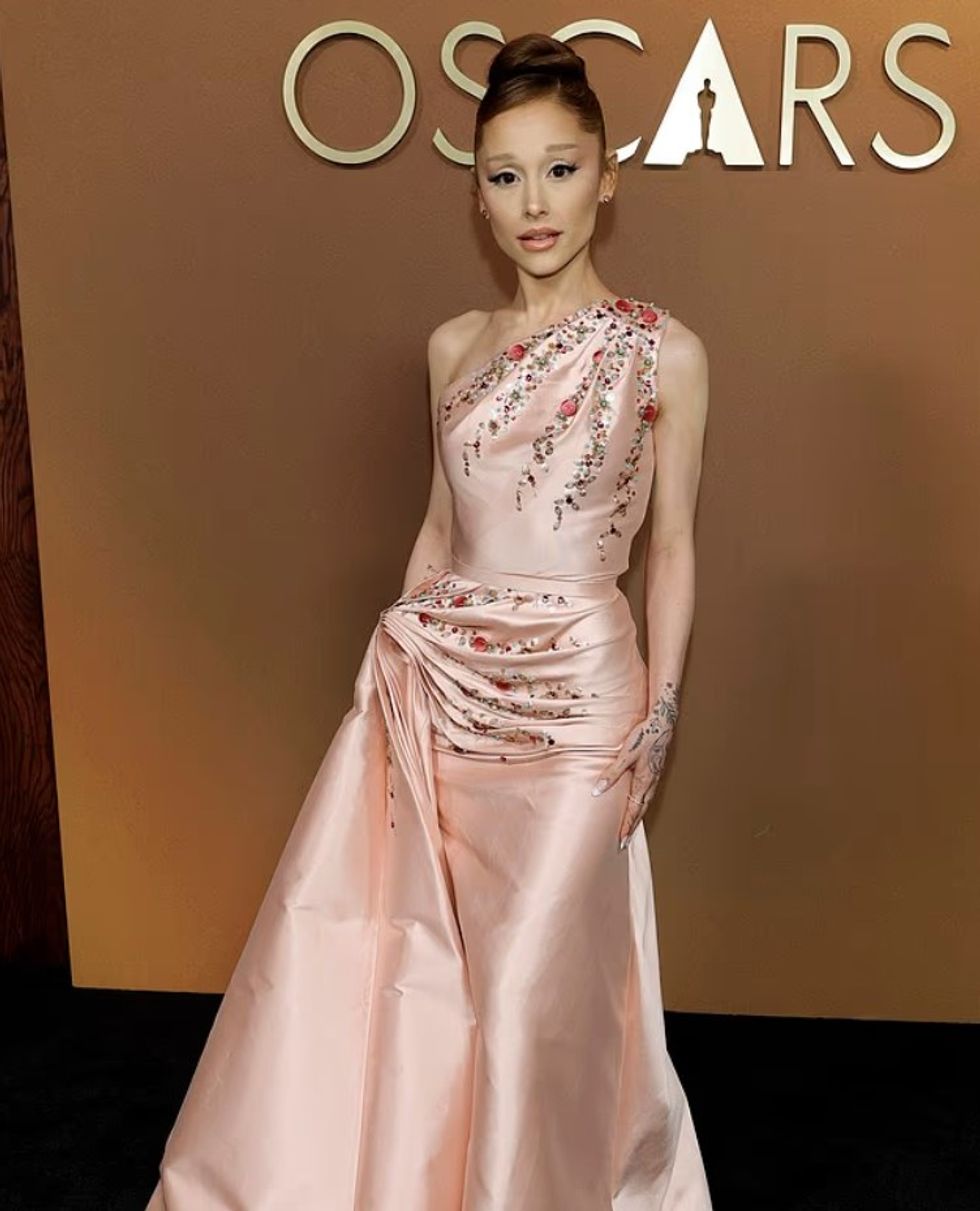 Këngëtarja 32-vjeçare mahniti me një fustan delikat Dior rozë të zbehtë, vintage nga koleksioni pranverë-verë 2007, me një shpatull dhe detaje të punuara me rruaza. Flokët e errësuar së fundmi i kishte të kapura në një stil elegant me ndarje anësore.