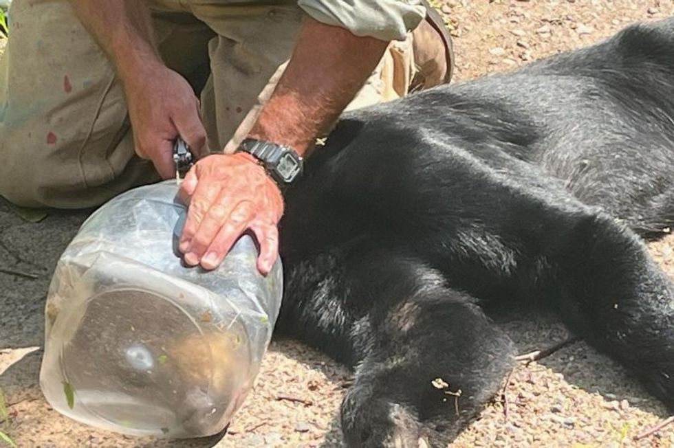 Një ari i ri në Wisconsin është shpëtuar pasi koka e tij kishte mbetur e mbërthyer në një kavanoz plastik për disa ditë.