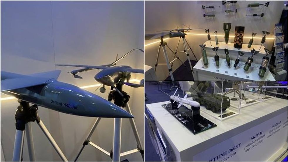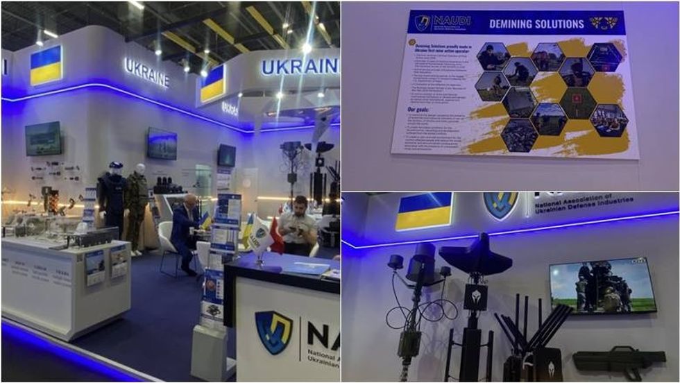 Pavijoni ukrainas përfshin prodhues të UAV-ve, sistemeve të luftës elektronike, automjeteve të blinduara, armëve dhe pajisjeve, sistemeve të menaxhimit të fushëbetejës dhe inovacioneve të tjera ushtarake.