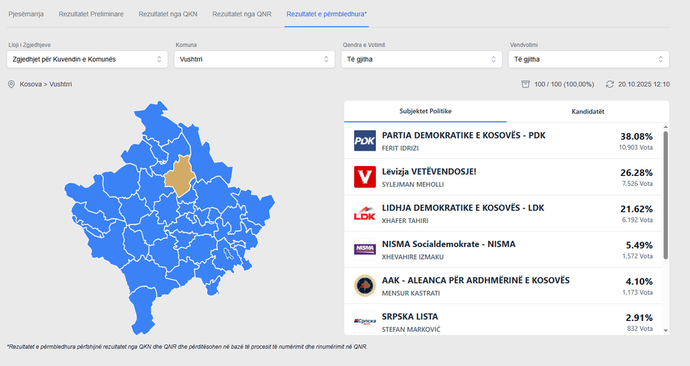 Vlen të ceket se nga rezultatet e deritanishm preliminare, Ferit Idrizi nga Partia Deomratike e Kosovës ka dalë i pari me 38.08 për qind apo 10,903 të votave.