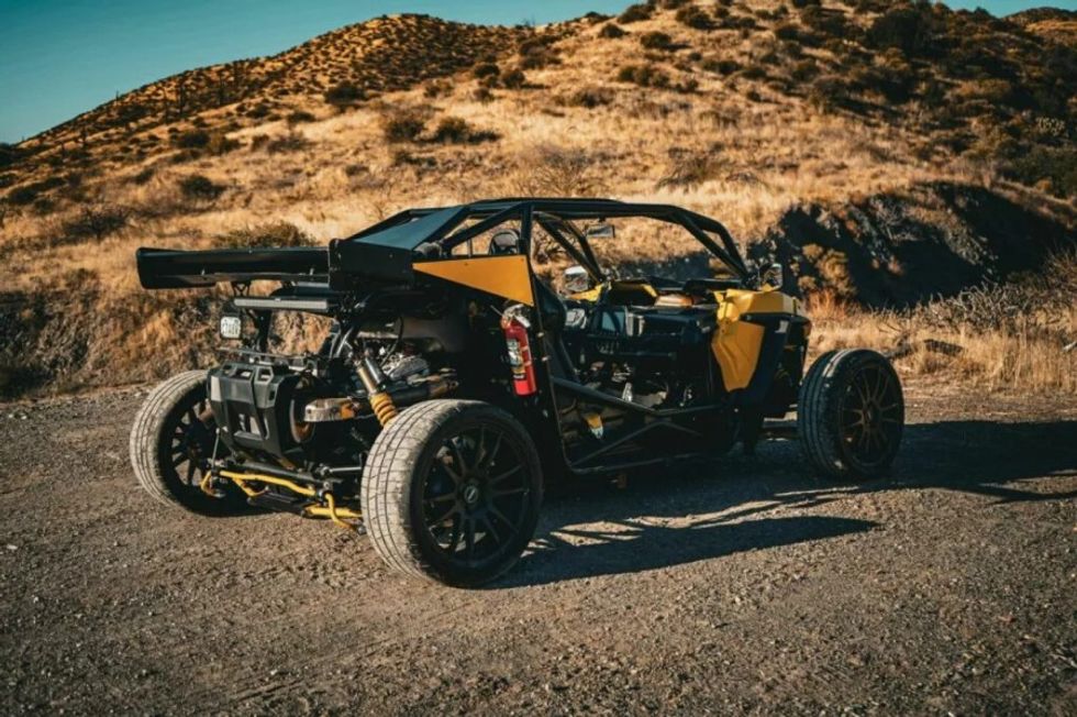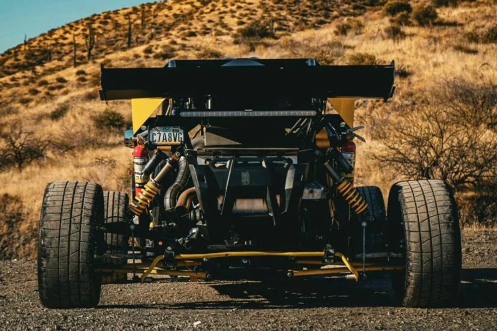 Në pjesën e pasme, ka një spojler të madh të pasmë, dhe në mes, ky RZR merr vende nga gjenerata 911 GT3 RS 997.