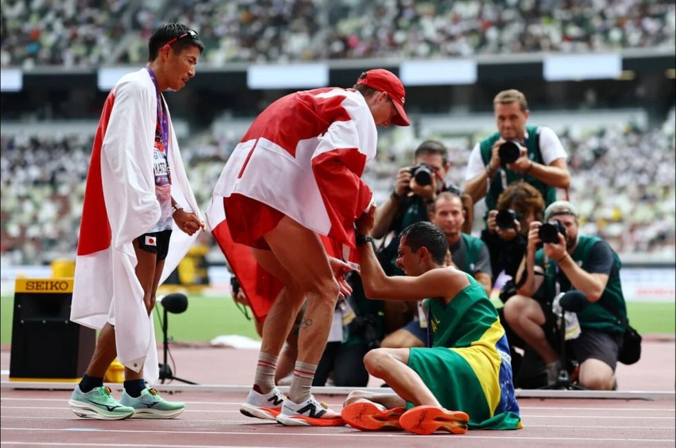 Braziliani Caio Bonfim, i cili përfundoi i dyti në fund, ishte dukshëm i rraskapitur kur hyri në vijën e ‘finishit’, prandaj u shtri në pistë dhe priti ndihmë.