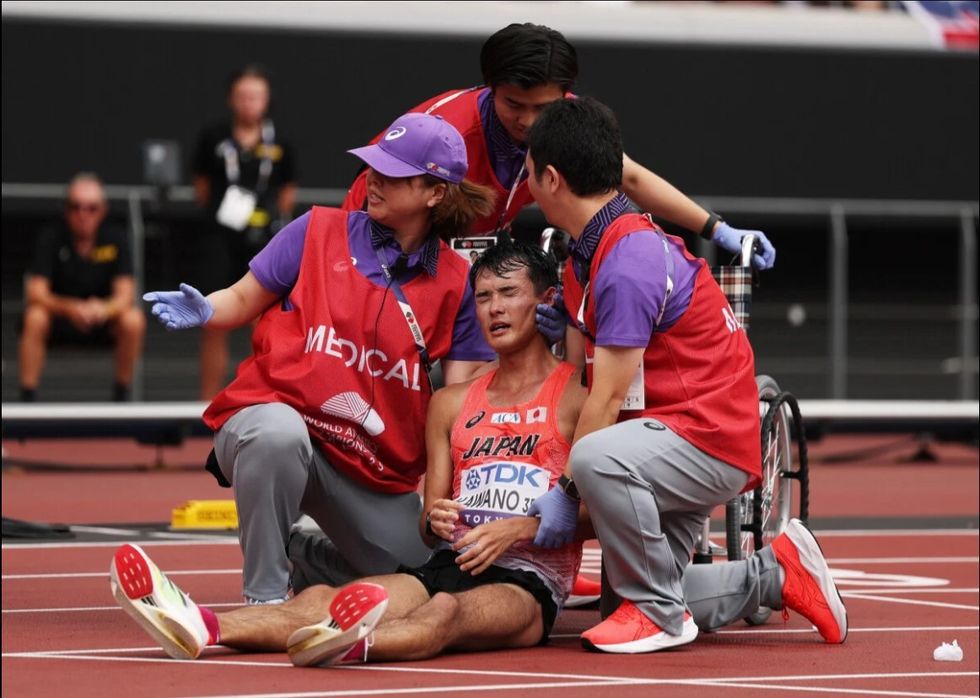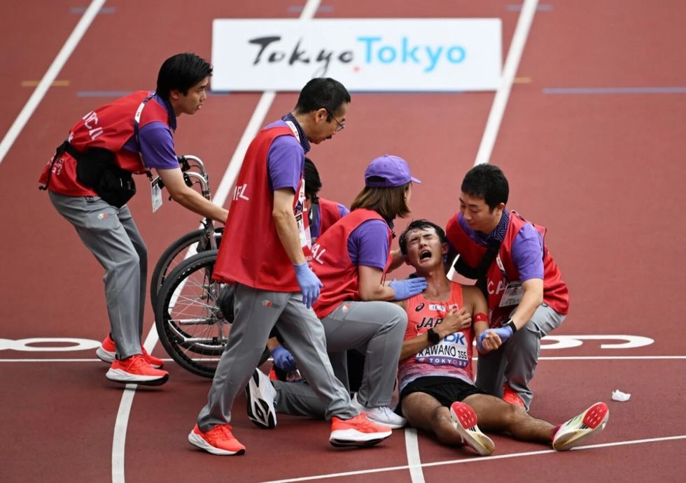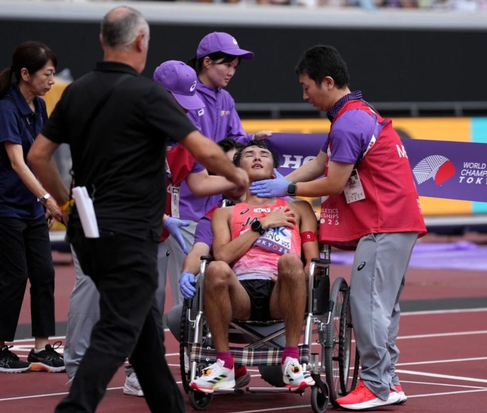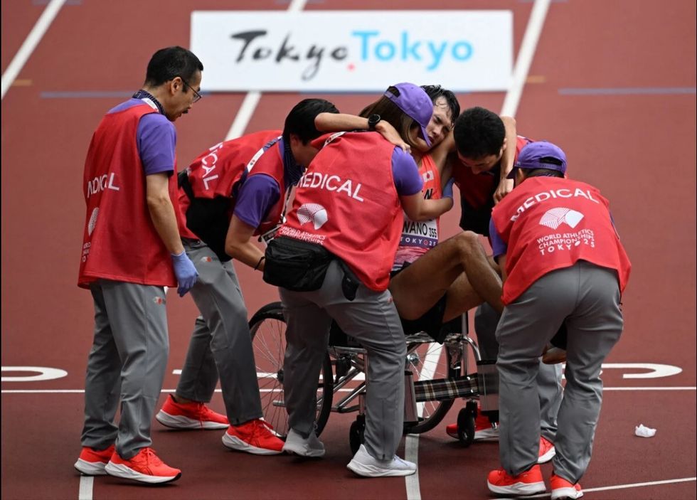 Atleti japonez u largua nga stadiumi me një karrocë pas lagështirës ekstreme në Kampionatin Botëror