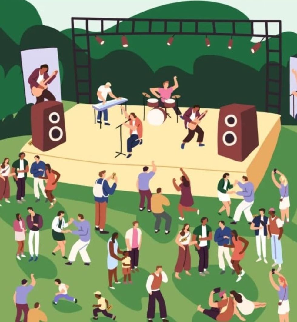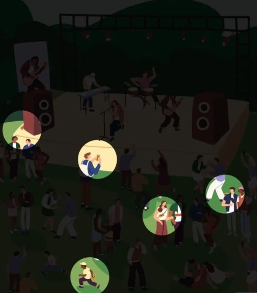 Në ilustrimin e një koncerti janë fshehur pesë “bileta” që duhet të gjenden mes vizitorëve të shumtë.