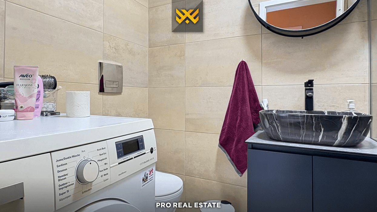 Banesa ka orientim nga perëndimi dhe jugu, duke mundësuar ndriçim natyral gjatë pjesës më të madhe të ditës. Hapësira e brendshme përfshin qëndrimin ditor, kuzhinën, dy dhoma gjumi, një banjo, tualet dhe ballkon, duke ofruar një organizim të përshtatshëm për jetesë të përditshme.