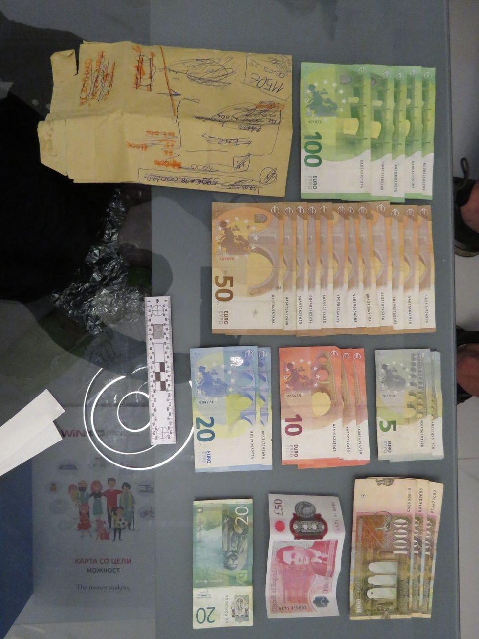 Gjatë kontrollit u gjetën dhe u sekuestruan një kompjuter desktop, tre hard disqe, dy laptopë, pesë USB, tre telefona celularë, rreth 4.000 euro, fletëpagesa dhe shpërndarje, si dhe gjoba parkimi të falsifikuara nga NP Parkingje të Komunës Qendër dhe karta policie me logon e Ministrisë së Brendshme.