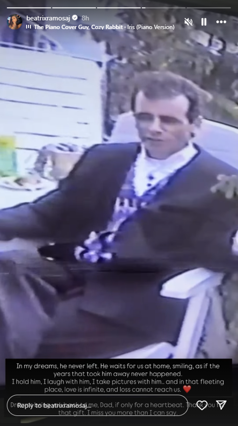 Në një postim në InstaStory, këngëtarja rikthehet tek kujtimet dhe ëndrrat që e lidhin me të, duke treguar se humbja e tij ende ndjehet, por dashuria për të mbetet e pafund.