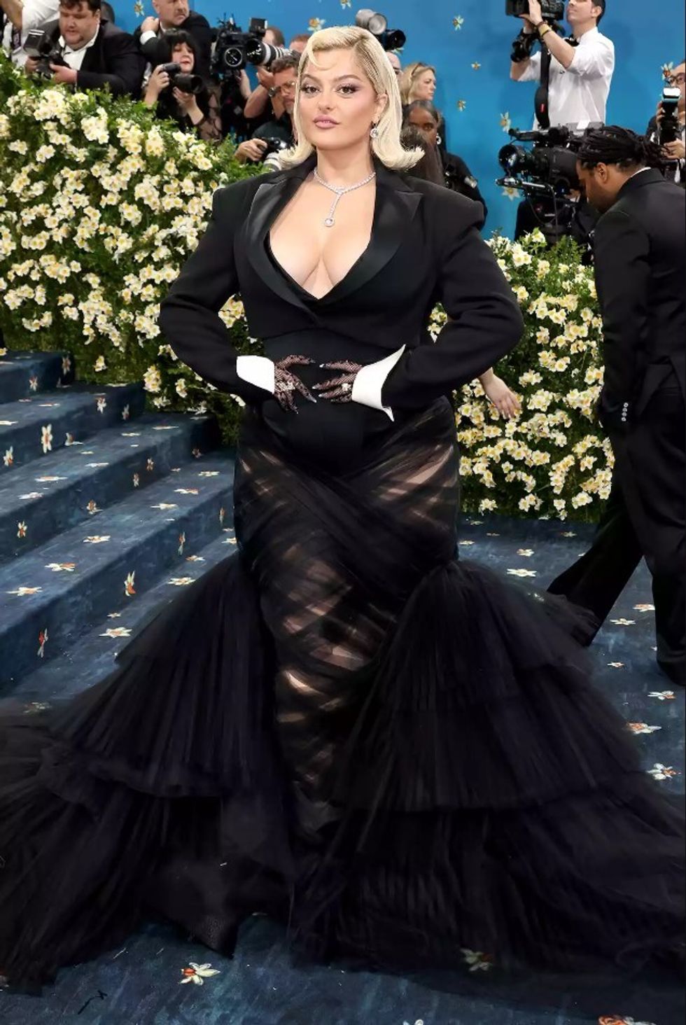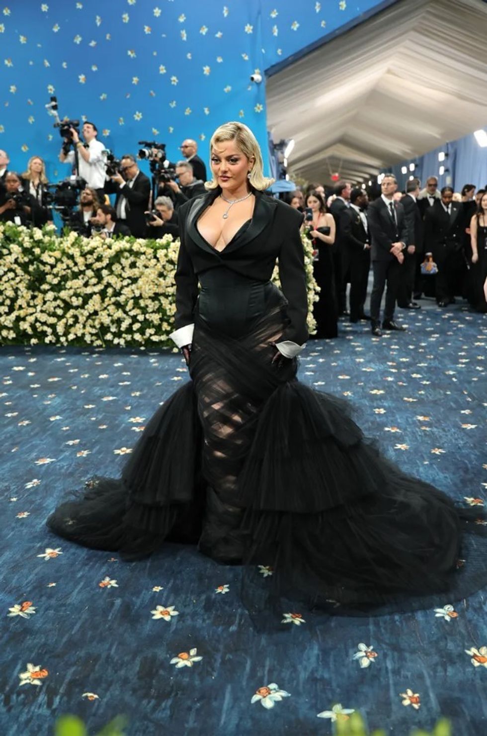 Për natën më të madhe të modës, këngëtarja 35-vjeçare zgjodhi një xhaketë të zezë të prerë me kujdes dhe një fund të gjatë prej tyli, që krijuan një kombinim të fuqishëm mes finesës dhe dramës.