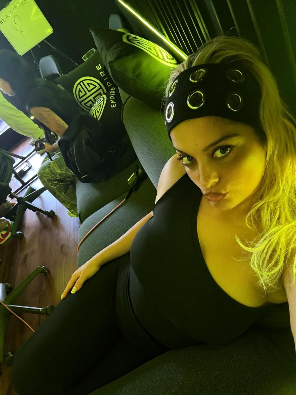 Lidhur me këtë moment, ajo ka postuar gjithashtu një foto të shkrepur në një ambient të brendshëm, ku përmban një atmosferë të ngrohtë dhe të bukur, e cila nënvizon stilin e saj modern dhe të rafinuar. Ngjyrat neon dhe detajet e ambientit përputhen me pamjen e saj të fuqishme dhe të vetëbesuar.