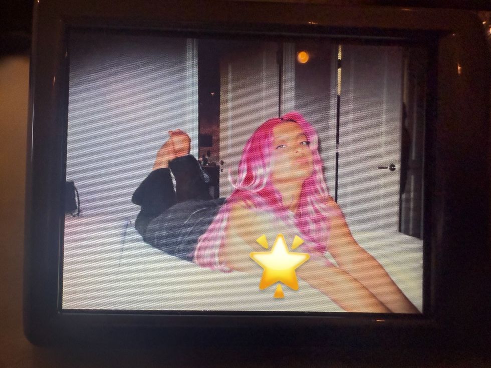 Ajo po eksperimenton me një stil të ri, duke shfaqur flokët e saj rozë të gjata, një dukje që i jep një pamje shumë moderne dhe energjike.