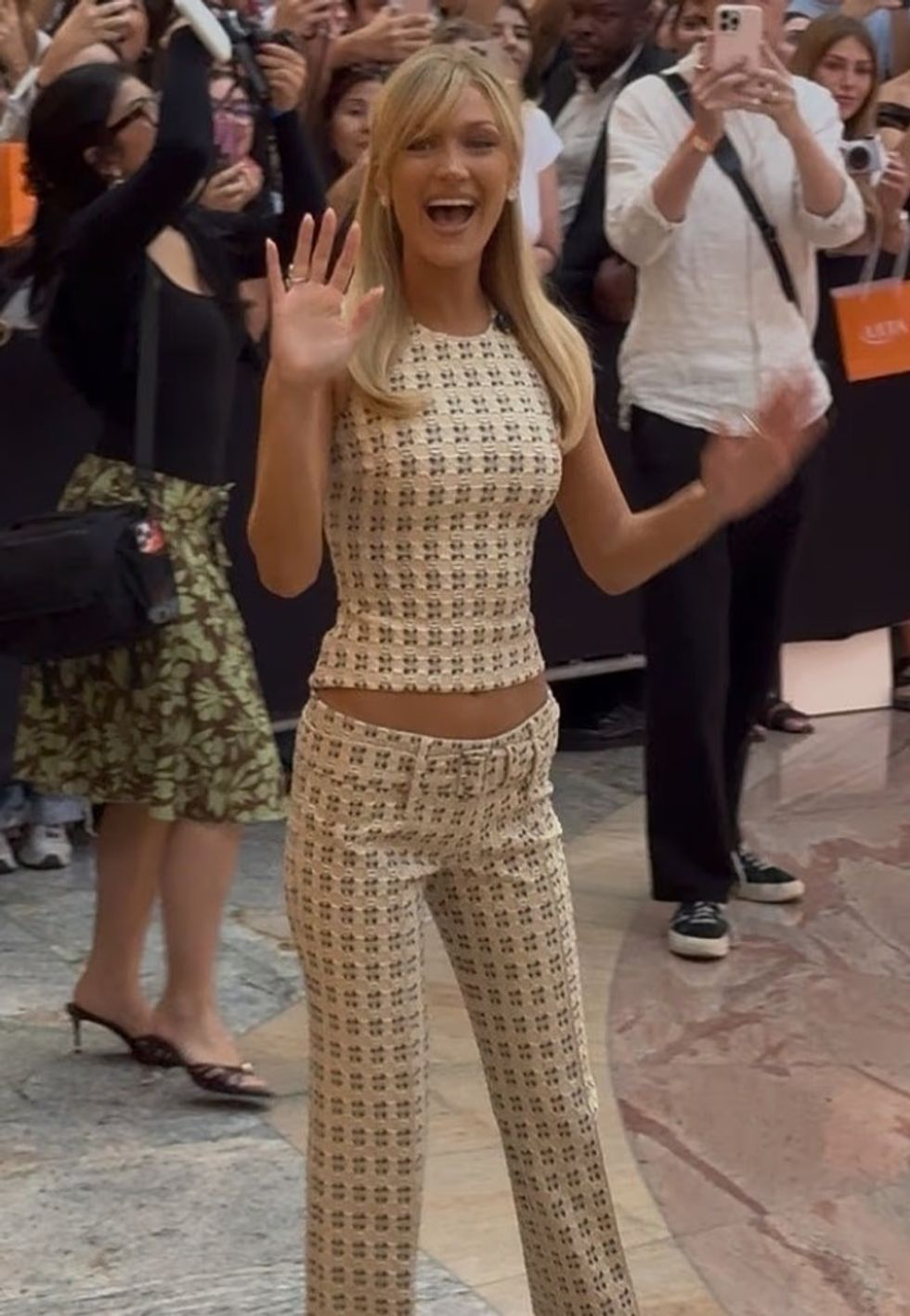 Ndërsa largohej nga qendra tregtare, Bella përshëndeti fansat e saj me buzëqeshje, duke i dhuruar një moment të ngrohtë dhe personal tifozëve të saj.