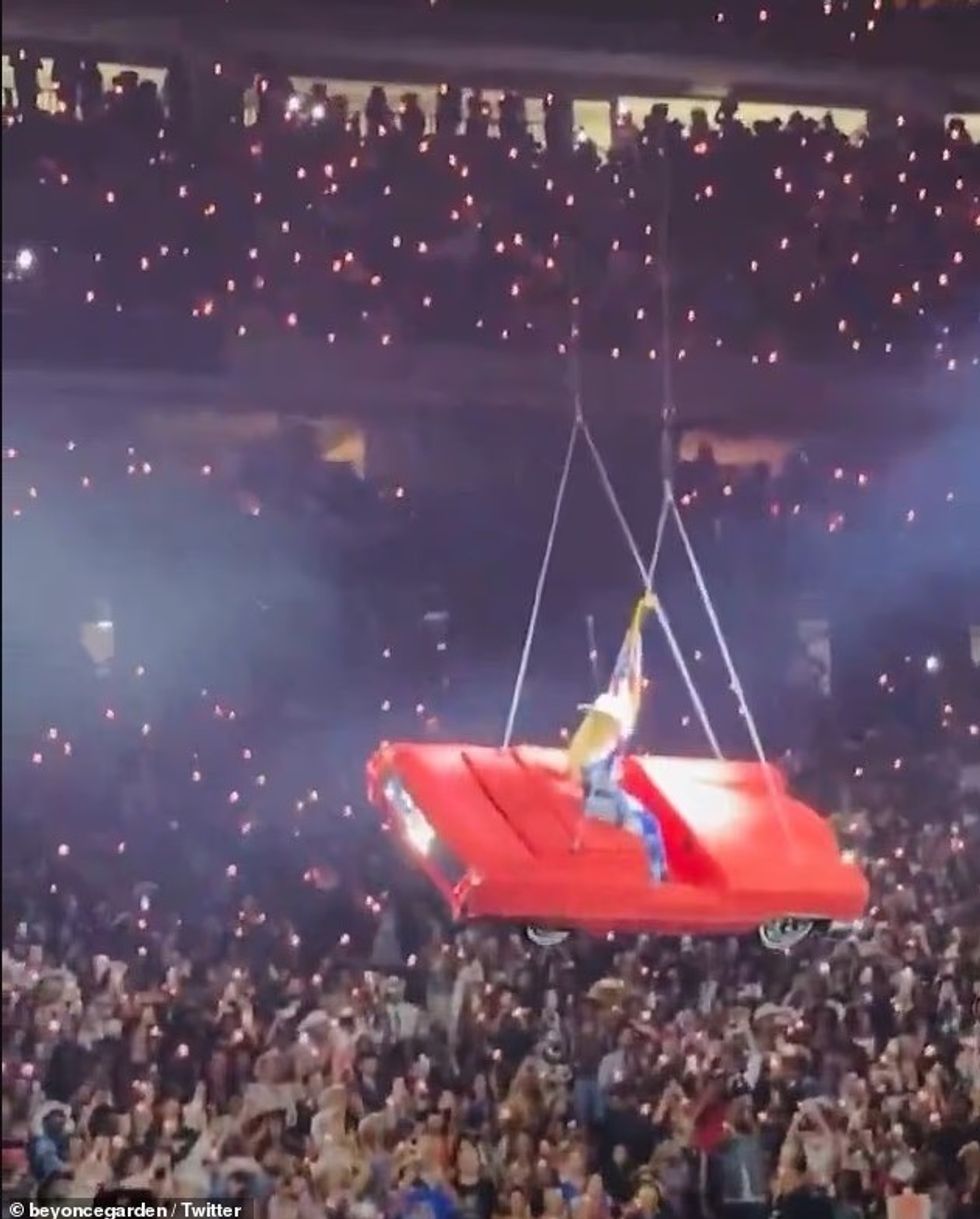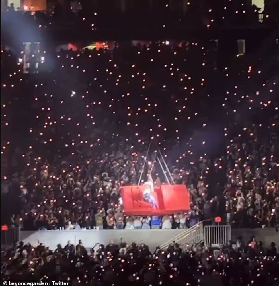 Beyonce përjetoi një moment të frikshëm gjatë koncertit të saj në Houston, ku makina fluturuese me të cilën po udhëtonte në ajër filloi të anohej në mënyrë të rrezikshme, duke detyruar këngëtaren të ndërpresë përkohësisht performancën.