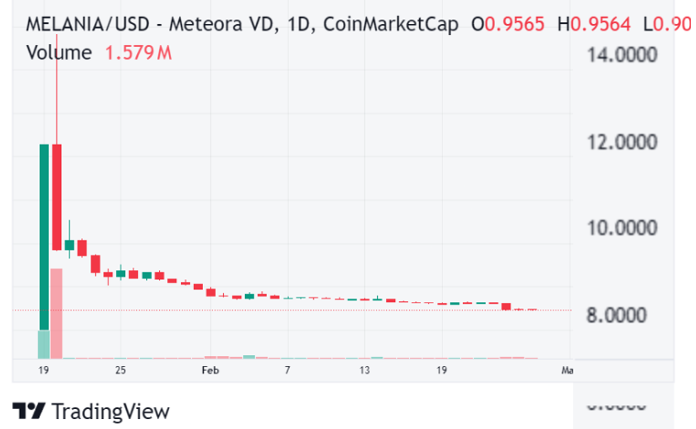 Bie në mënyrë drastike çmimi i kriptovalutës së Melanias - gjithçka duket si mashtrim i madh
