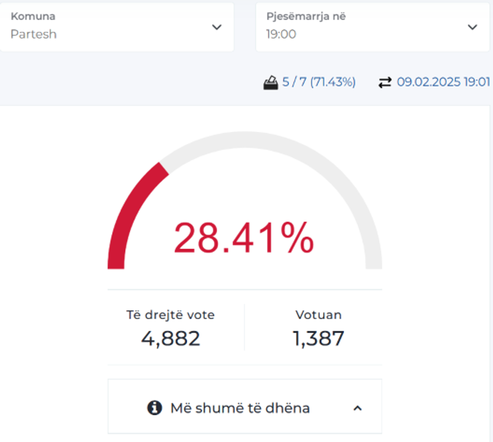 Në Komunën e Parteshit nga 4882 votues, deri në ora 19:00 kanë votuar 1387 qytetarë, apo 28.41 përqind.