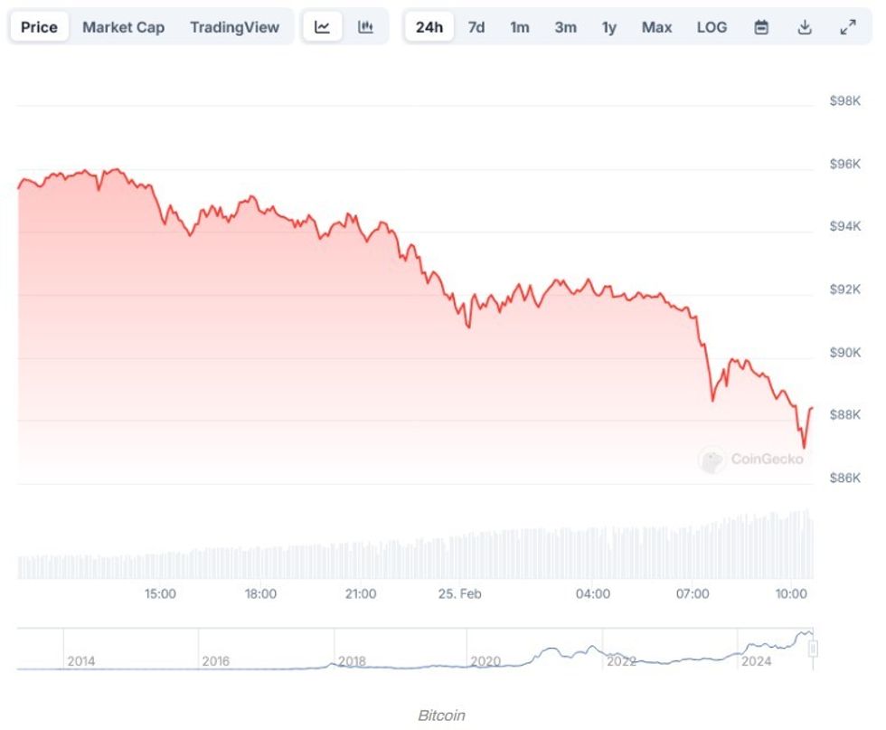 Tregu i kriptomonedhave pësoi një goditje të fortë më 25 shkurt, ku çmimi i Bitcoin ra nën 90 mijë dollarë për herë të parë që nga muaj nëntor i vitit të kaluar.