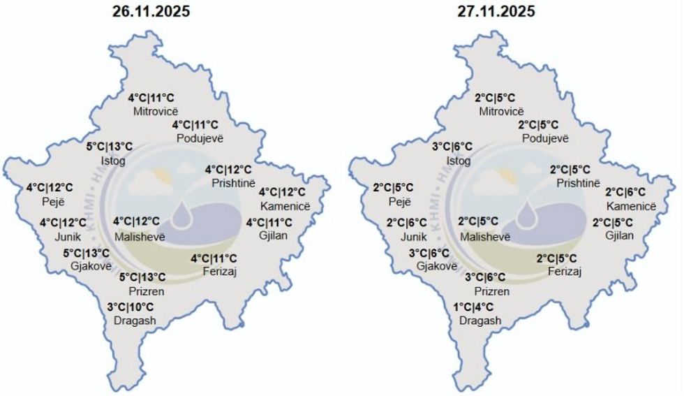 IHK njofton se në zonat malore priten reshje të vazhdueshme bore, ndërsa në ultësira reshjet fillimisht do të paraqiten në formë të rigave të dobëta shiu, të cilat me rënien progresive të temperaturave do të transitojnë gradualisht në reshje bore.