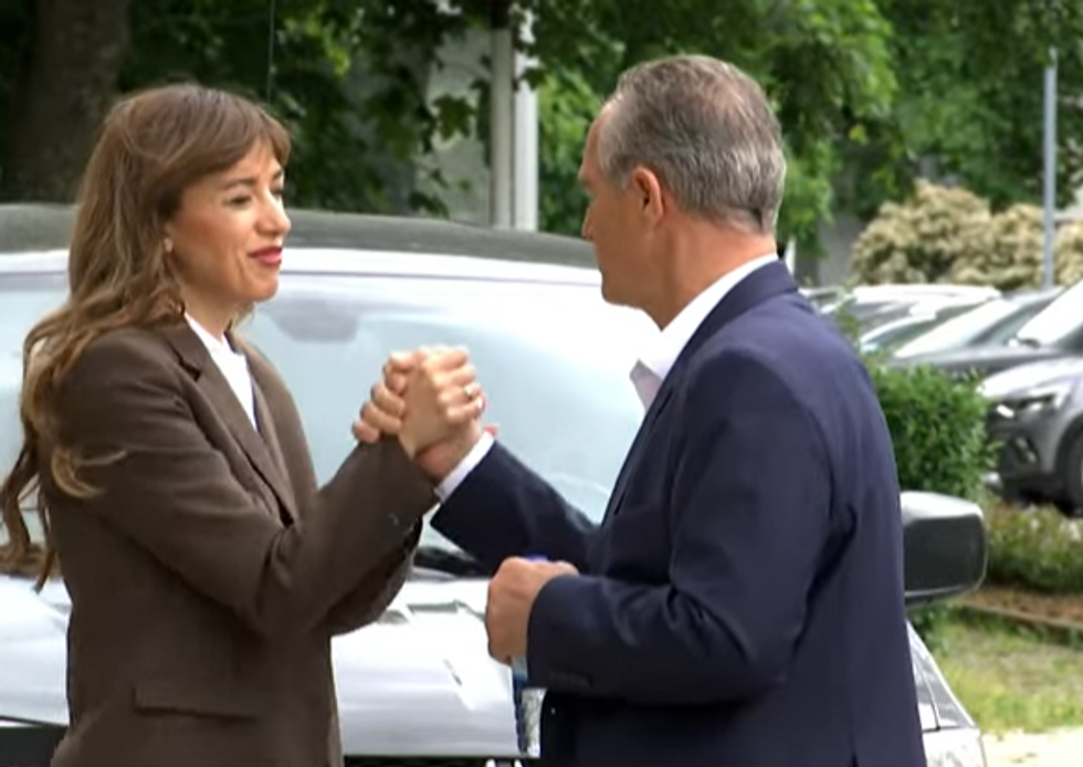 Në fund shtrënguan duart njëri-tjetrit. Nuk dihet nëse kjo bisedë kishte të bënte pikërisht me kandidaturën e Albulena Haxhiut për kryeparlamentre./Telegrafi/