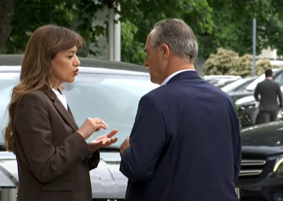 E teksa në hollin e Kuvendit po fliste kryetari i PDK-së, Memli Krasniqi, një bisedë tjetër po zhvillohej në oborrin e Kuvendit mes deputetit Nait Hasani dhe ministres në detyrë Albulena Haxhiu, njëherit edhe e propozuara e LVV-së për kryeparlamentare.
