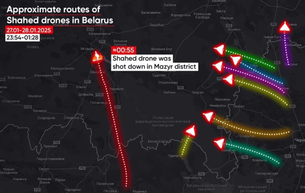 Sipas projektit bjellorus Hajun, dronët u regjistruan duke fluturuar në hapësirën ajrore të vendit midis orës 23:30 dhe 1:30 të mëngjesit.