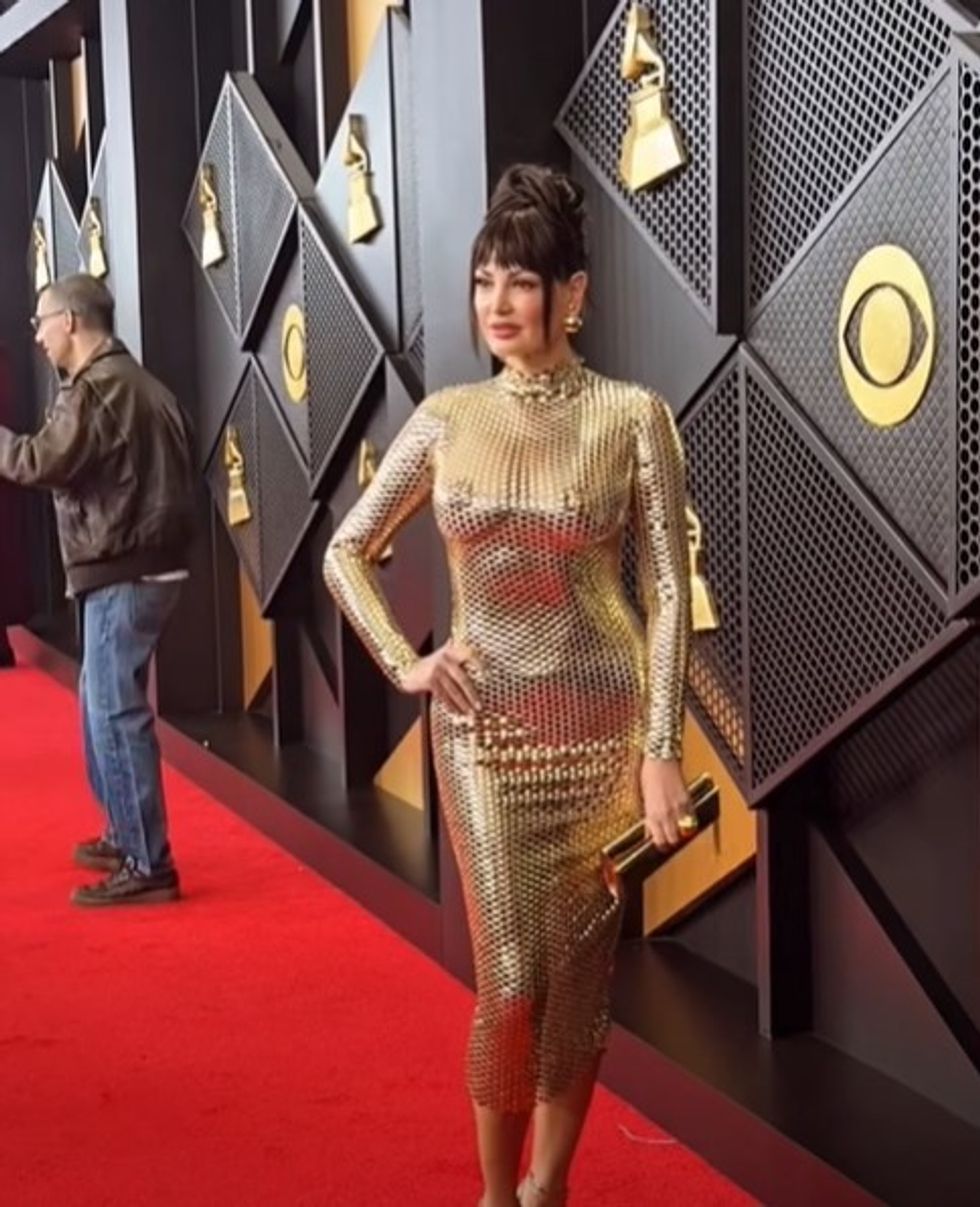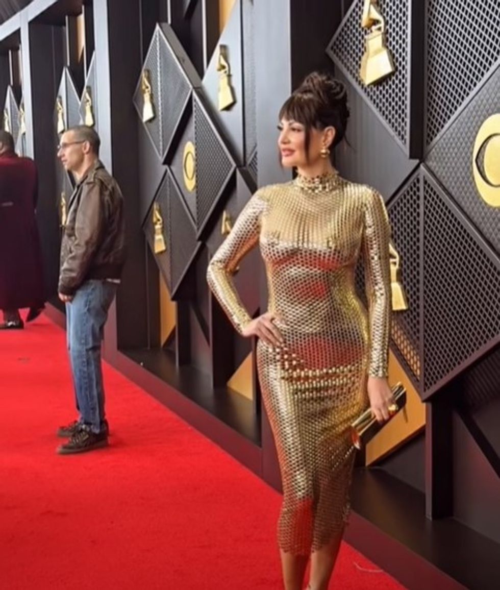 Bleona shfaqet me një pamje tejet glamuroze dhe të guximshme, në harmoni të plotë me atmosferën luksoze të Grammy Awards.