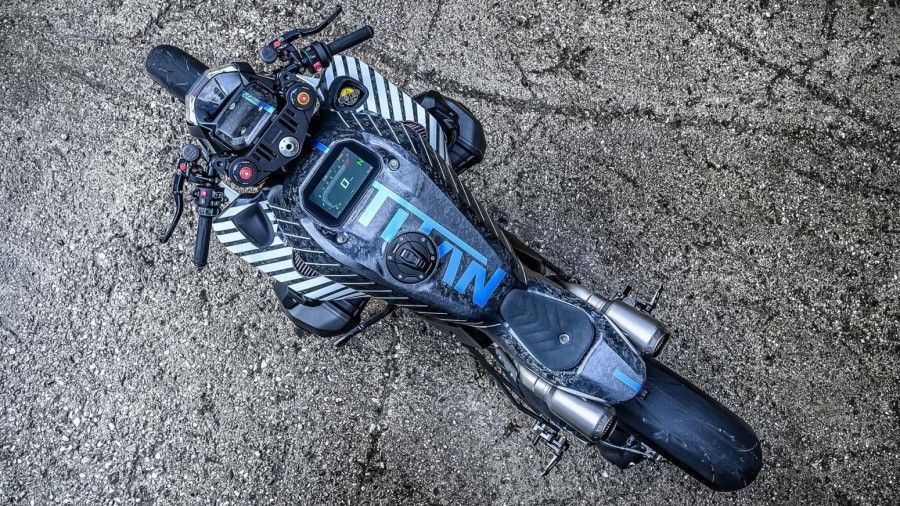 Linjat e rezervuarit dhe mbulesa janë transferuar në monokokën e garave. Kanali i ajrit i dallueshëm nga modeli i prodhimit theksohet më tej në versionin Titan.