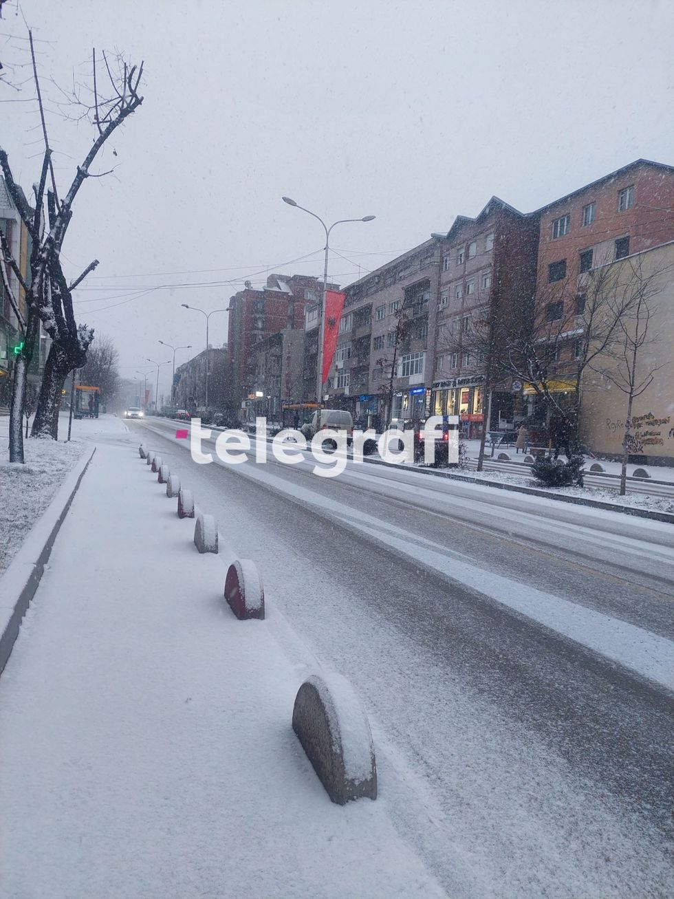 Reshjet që kanë nisur gjatë natës kanë vazhduar edhe në mëngjes, duke mbuluar rrugët dhe trotuaret dhe duke shkaktuar edhe sfida për drejtuesit e mjeteve dhe këmbësorët.