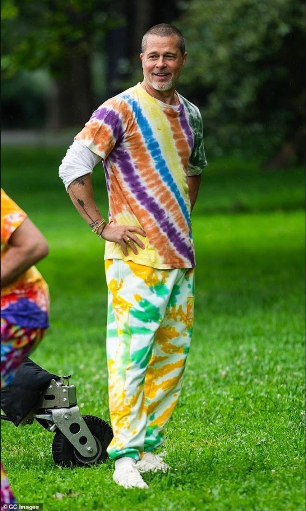 Mbrëmjen e mëparshme, Pitt u pa me të dashurën Ines de Ramon, 32 vjeçe, duke rikrijuar stilin e famshëm të personazhit të tij Tyler Durden nga "Fight Club", me një këmishë mëndafshi ngjyrë livando dhe një kostum të thellë vjollcë.