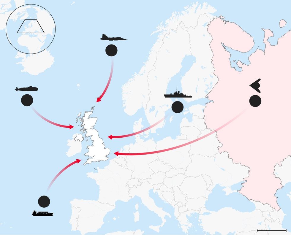 Kundër Britanisë, Rusia ka më shumë gjasa të fokusohet te objektivat ushtarakë me vlerë të lartë, si aeroportet kritikë dhe qendrat e komandës dhe kontrollit. Pra, Mbrojtja e Mbretërisë së Bashkuar përcaktohet disi nga mbrojtja e këtyre objektivave, kështu që sistemi ynë mbrojtës antiraketor nuk ka nevojë të jetë plotësisht gjithëpërfshirës për të vepruar si pengesë.