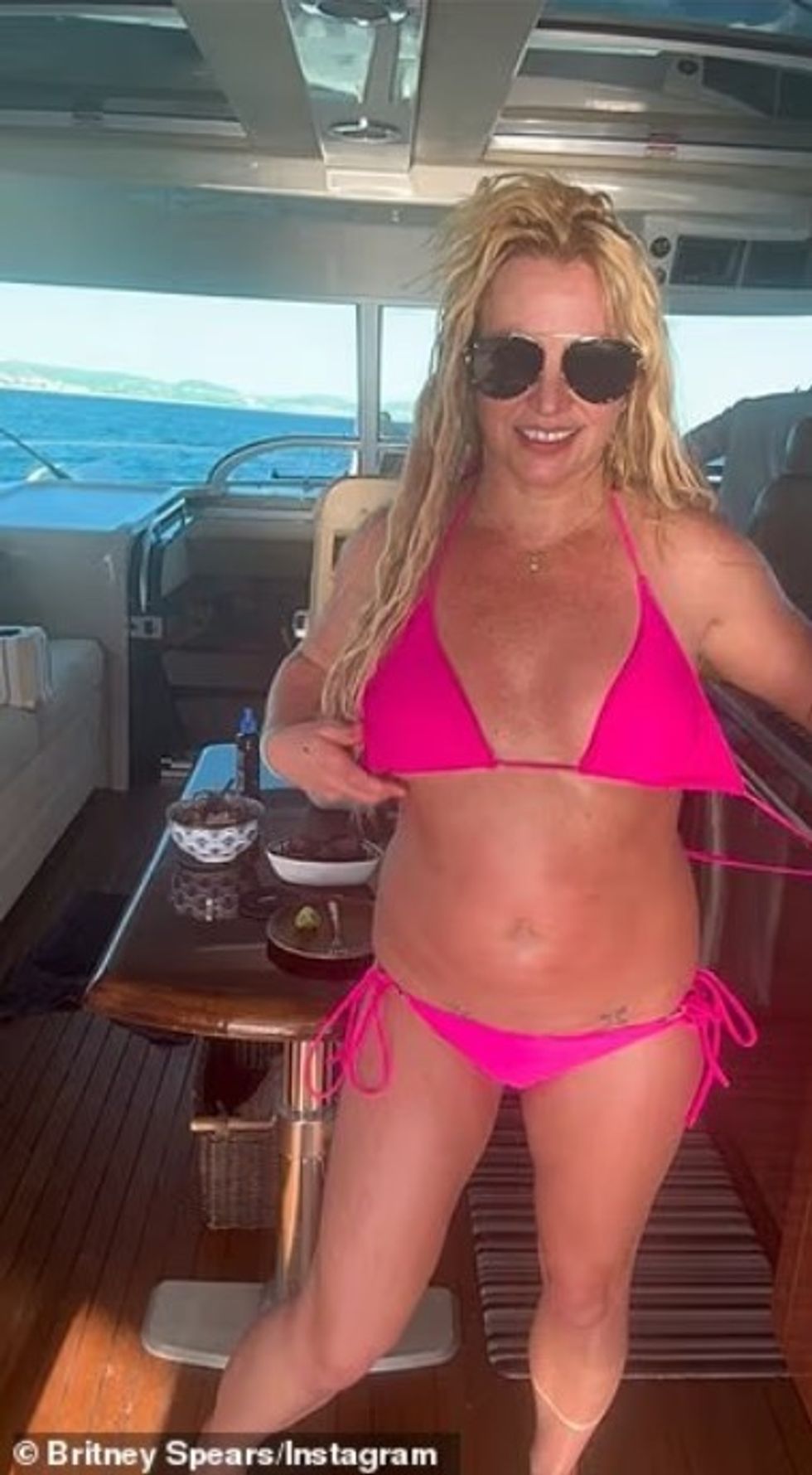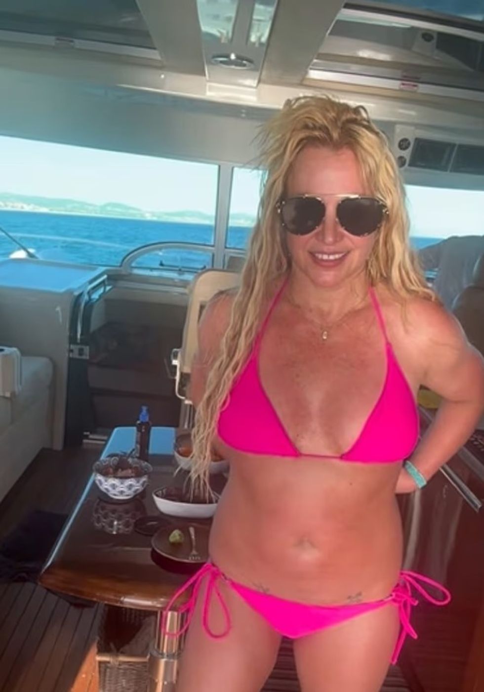 Britney Spears festoi ditëlindjen e 44-të duke u shfaqur me bikini rozë të ndezur dhe taka në një jaht të marrë me qira në Meksikë.