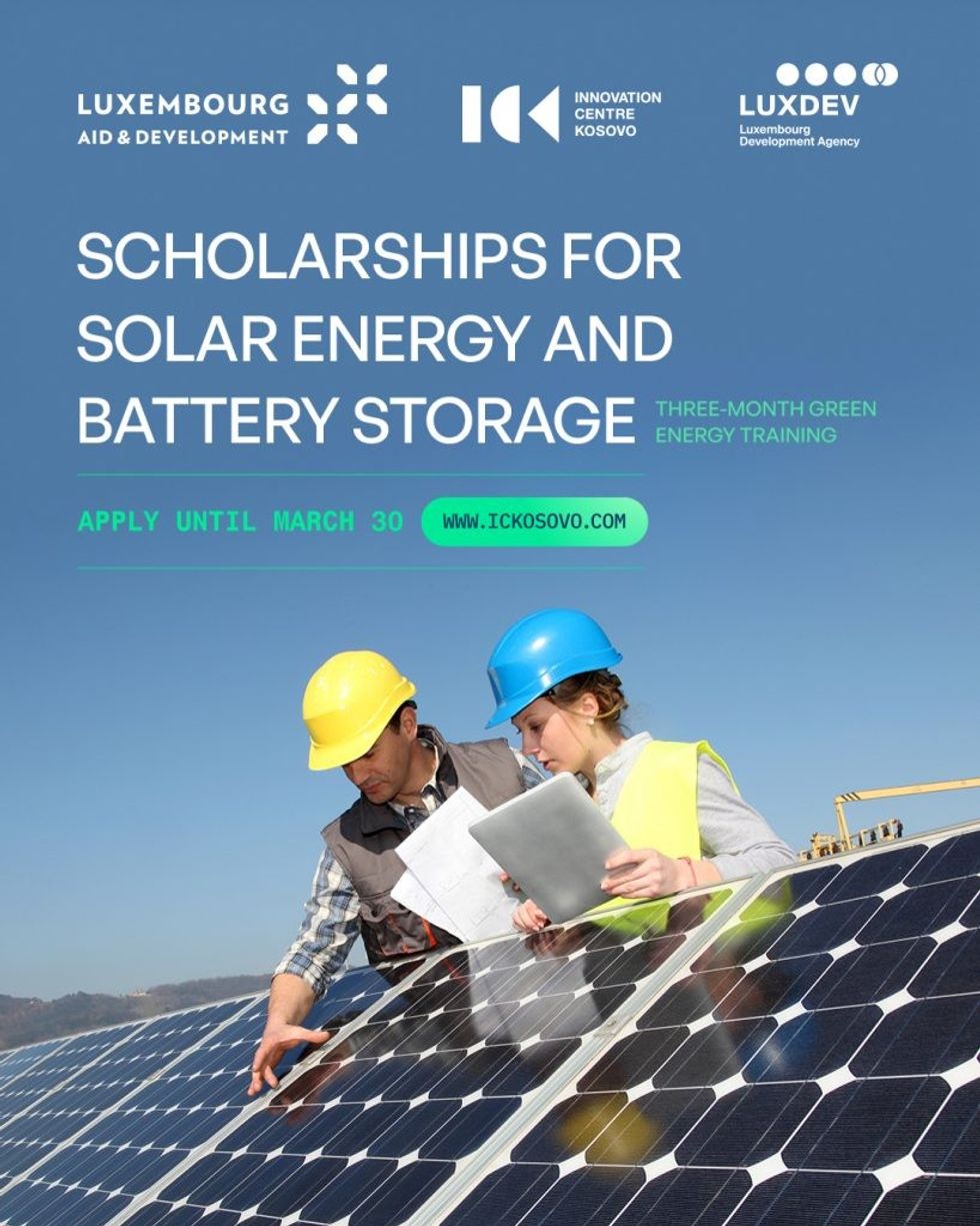 Innovation Centre Kosovo (ICK), nëpërmjet programit “GreenTech”, në bashkëpunim me LuxDev, Agjencinë për Bashkëpunim Zhvillimor të Luksemburgut, ofron bursa të plota për aftësim profesional dhe punë praktike me pagesë për të rinjtë nga Kosova. Afati i fundit për aplikim është 30 Mars 2025.