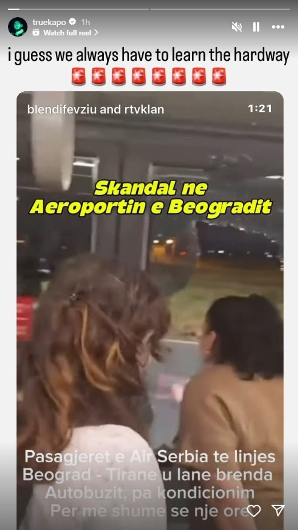 Ai e rishpërndau videon në Instastory, duke shkruar në anglisht: “Mesa duket, gjithmonë na duhet të mësojmë në mënyrën më të vështirë”.
