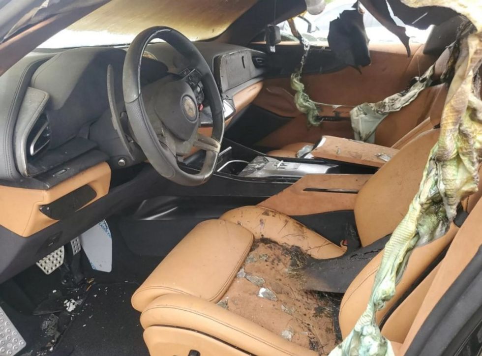 Megjithatë, disa pjesë si rrotat, dritat e pasme dhe emblemat duken ende të paprekura.