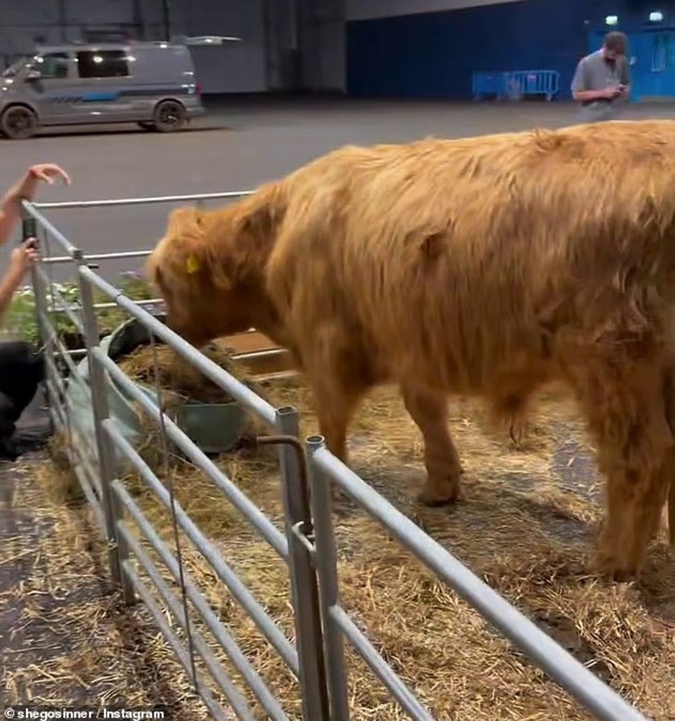 Artistja, e njohur për estetikën e saj unike dhe për energjinë ‘drag’ që e shoqëron, solli një poni, dy lopë Highland, katër këlyshë labradori dhe dy dhi për të krijuar një atmosferë relaksuese para shfaqjes.