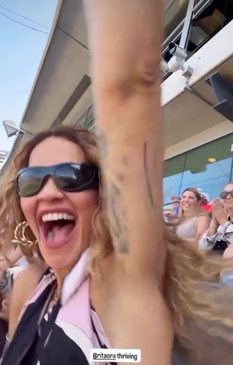 Ngjarja u zhvillua në MetLife Stadium, New Jersey, dhe Rita u shfaq e entuziazmuar dhe duke festuar me dorëza të zeza dhe shami të mëndafshtë në ngjyrë të zezë e rozë.