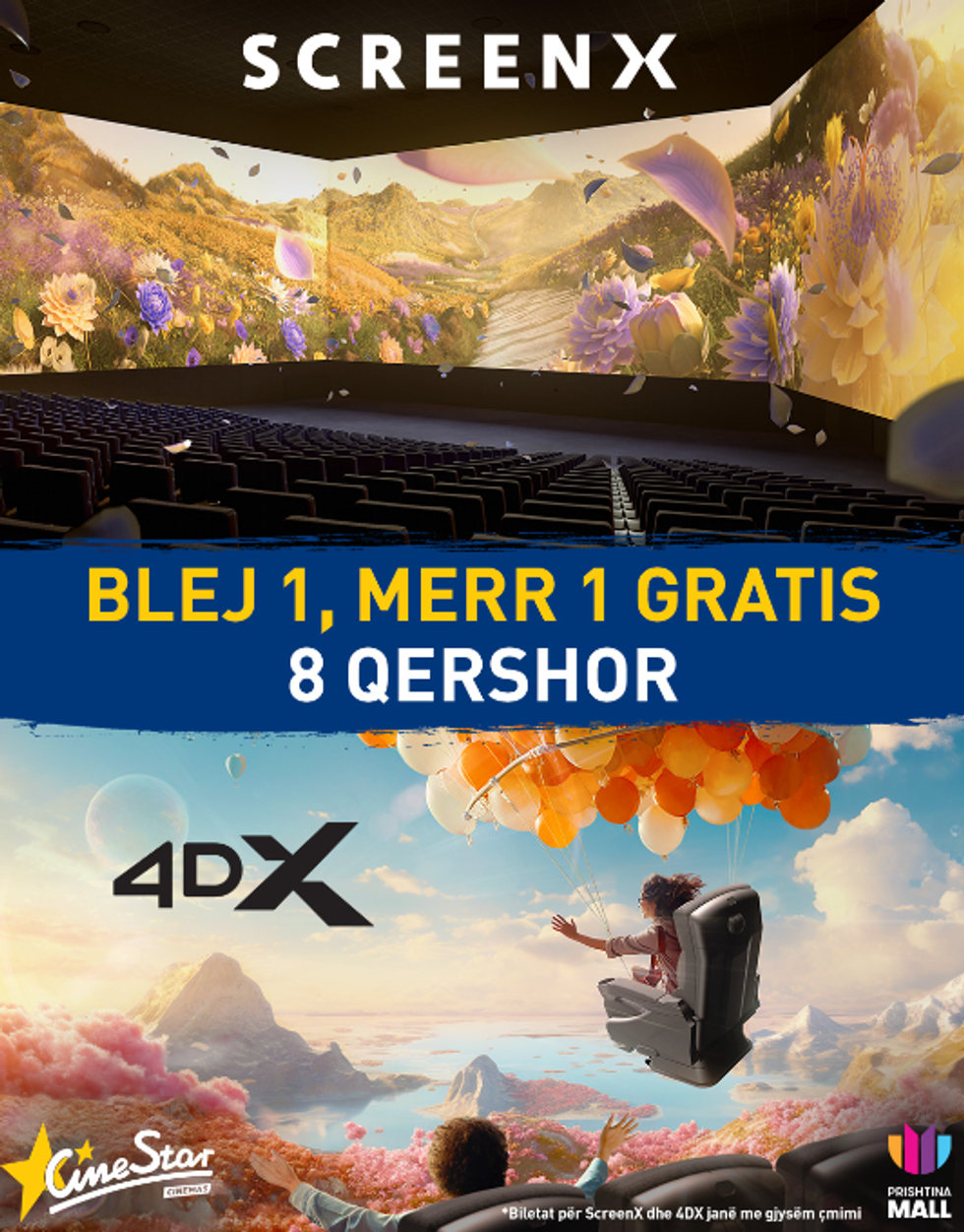 Këtë të diel, më 8 qershor, CineStar sjell një super ofertë të biletave në formatet premium SCREENX dhe 4DX për të gjithë adhuruesit e filmave dhe teknologjisë më të avancuar të kinemasë!